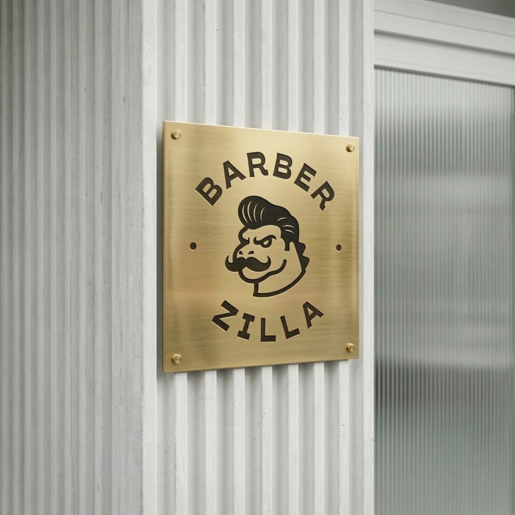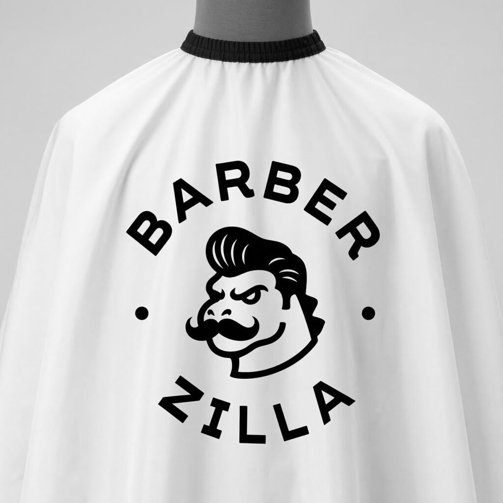 The name “Barber Zilla” instantly brings to mind a giant, chaotic, city-destroying monster (Godzilla). Left unchecked, a monster mascot could easily look like a messy heavy metal band logo, an esports gaming team, or a cartoon for kids. None of those fit a “modern-minimalist” shop in Gresik.