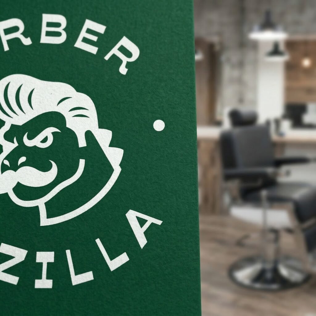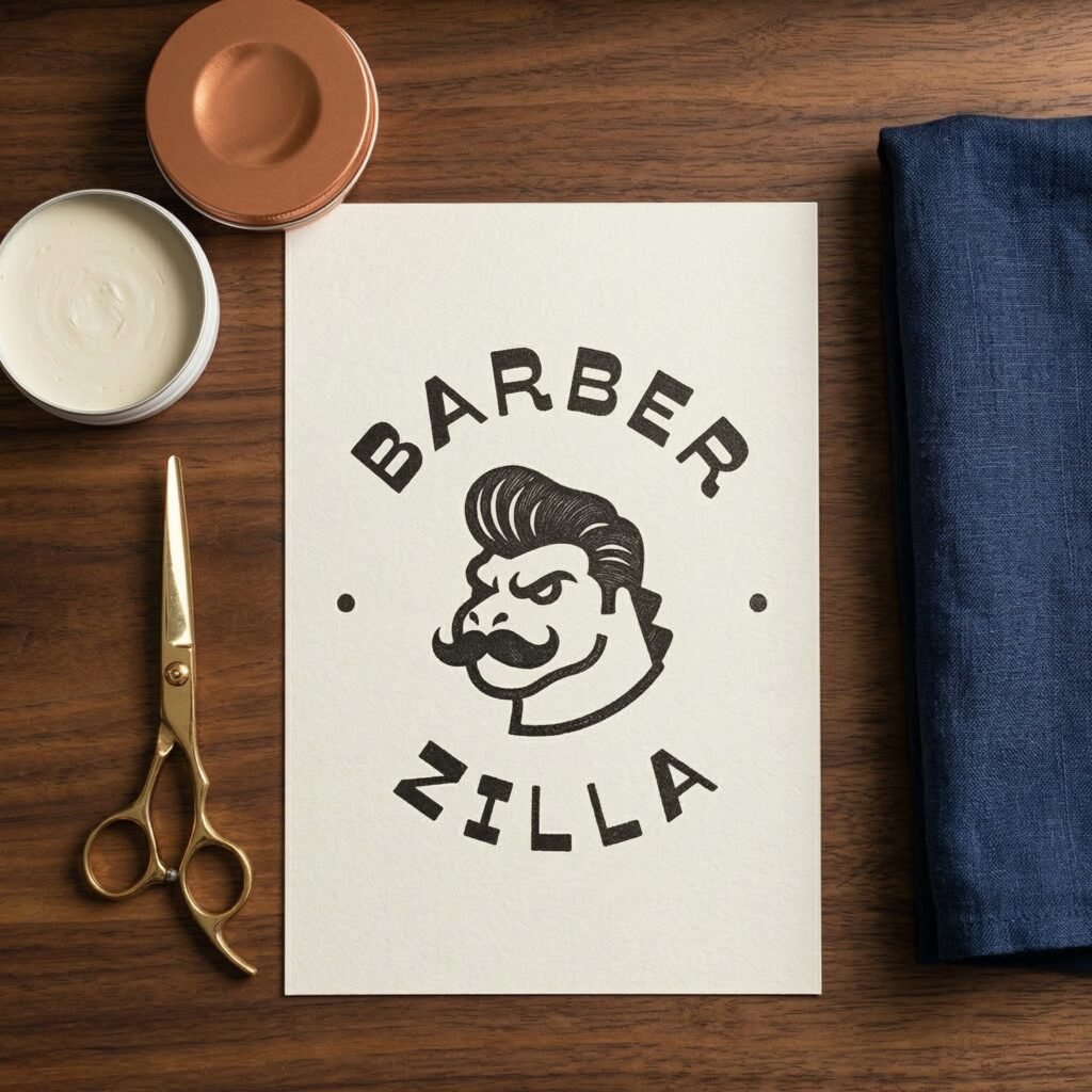 The name “Barber Zilla” instantly brings to mind a giant, chaotic, city-destroying monster (Godzilla). Left unchecked, a monster mascot could easily look like a messy heavy metal band logo, an esports gaming team, or a cartoon for kids. None of those fit a “modern-minimalist” shop in Gresik.